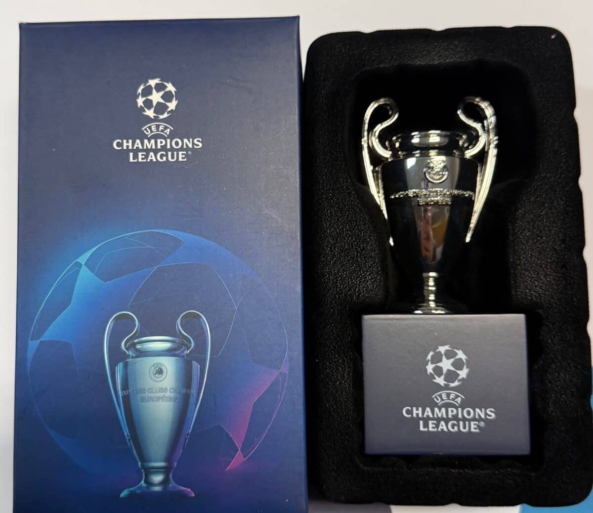 Perfect reproduction of the CHAMPIONS LEAGUE cup in chromed metal.