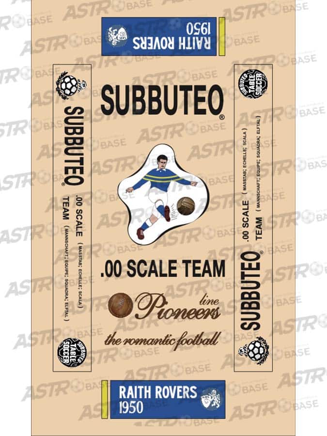 Raith Rovers 1950 - Team+2 substitutes and a spare goalkeeper in SUBBUTEO REPLICA COLORED BOX (name, logo and figure of the team on the cover) | € 32,00 |